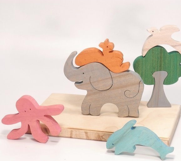 Слониками можно играть как в отдельности так и собирать их в объёмный пазл.