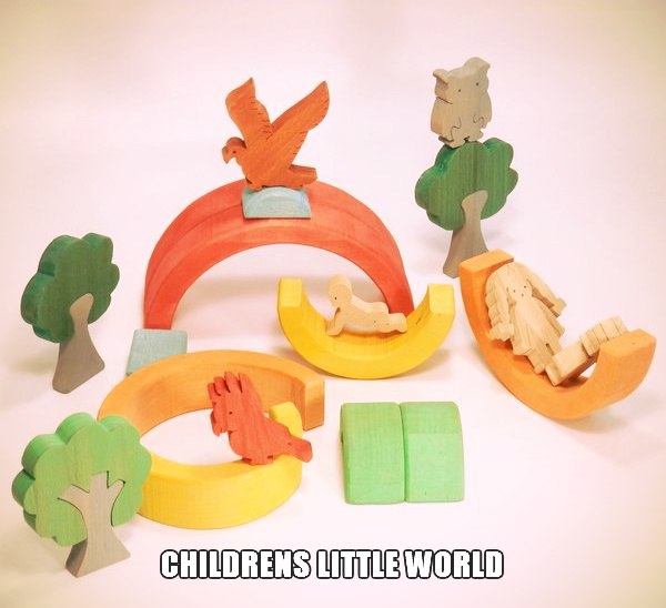 Игрушка полифункциональна. Детали можно собирать в пазл, складывать сорттер в коробочку, строить различные пирамиды, балансиры, играть в ролевые игры.