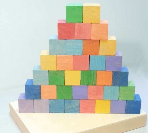 24 цветных звонких буковых кубика в мощной, массивной коробке. Кубики с правильными гранями, без острых краёв и углов.