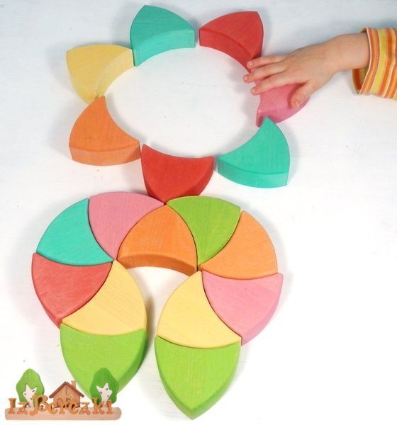 Игра становиться более разнообразней и увлекательней с двумя или тремя наборами лунного круга. Фигуры компонуются между собой и дети тянут вас за ручку показывая очередное творение