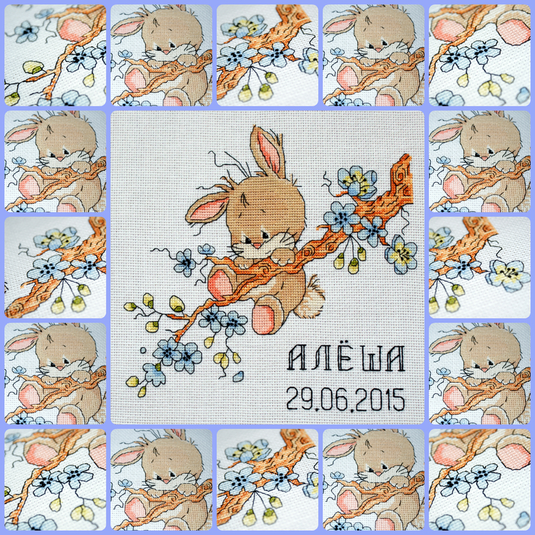 Вот такой милый зайка вышился в подарок сестре мужа на рождение сыночка