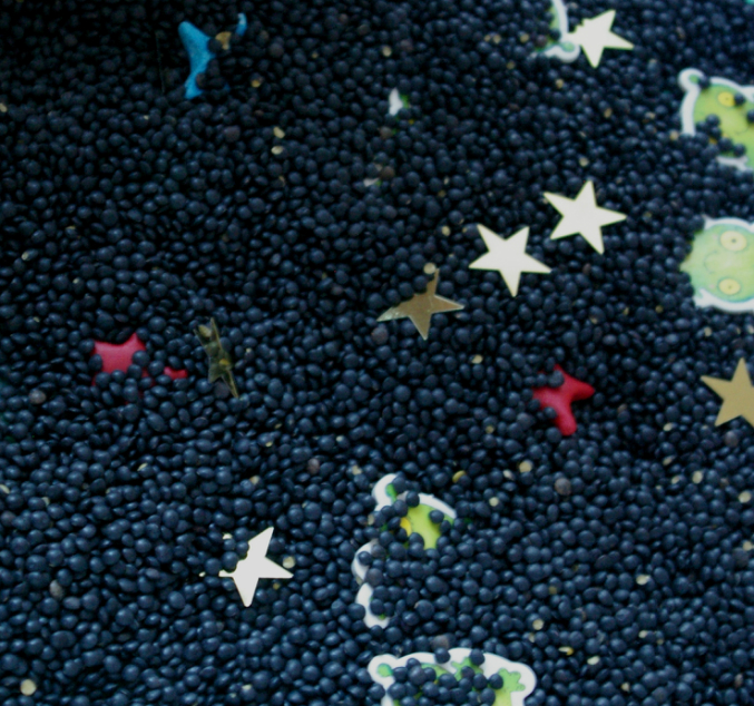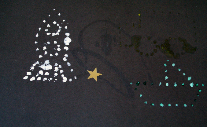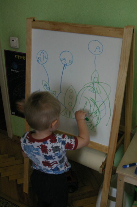 Рисовали созведия (через картонку с дырочками-как трафарет). Сынишке очень понравилось:-)