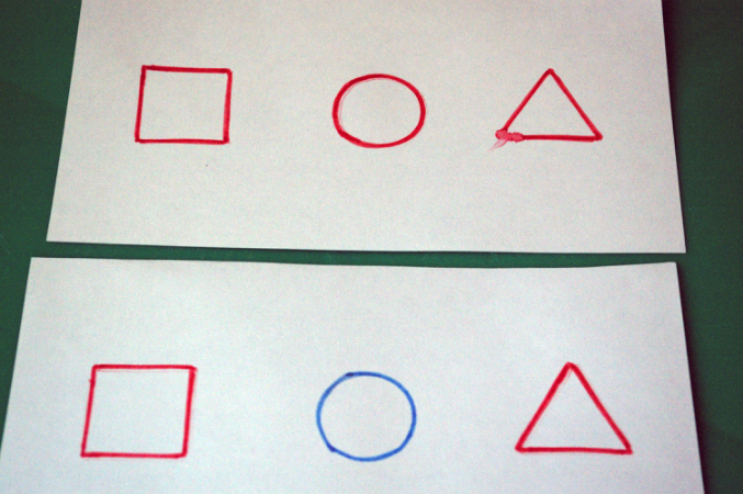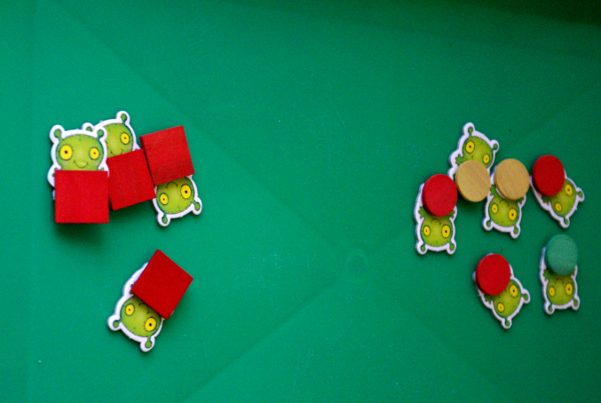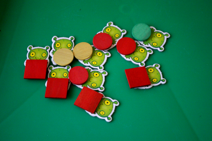 Но пока они к нам летели, они все перемешались, мы помогли каждому найти сородичя (поделили на кружки и квадраты):