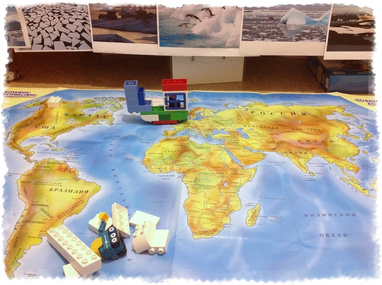 Сначала сверились с глобусом, точно ли внизу на юге находится самый холодный материк?