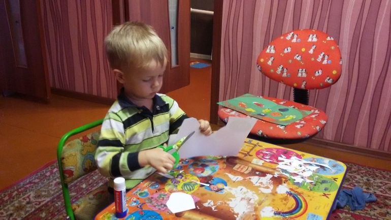 Матвей любит очень вырезать... ножницы используем каждый день.. Режим все.. и один раз пока мама готовила вырезали машину на трусах)))