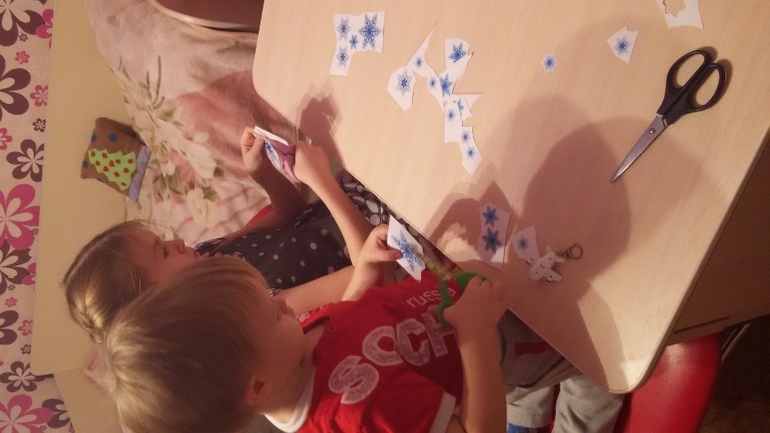 а мы в это время готовили сюрприз.. приклеили снежинки по всему дому.. всего 80 шт.. Матвей мне очень помогал))