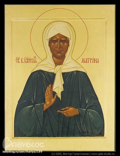 О, блаженная мати Матрона, к твоему предстательству прибегаем и тебе слезно молим. Яко имущую велие дерзновение по Господу, пролей теплую молитву о рабех твоих, в скорбе дущевней пребывающих и помощи от тебе просящих. Истинно бо слово Господне: просите и дается вам и паки: яко аще два от вас совещаете, на землю о всякой вещи, еяже аще просита, будет има от Отца Моего, иже на Небесех. Услыши убовоздыхания наша и донесико престолу Владычню, и деже ты предстоиши всмы, яко много может пред Богом молитва праведника. Да не до конца забудет нас Господь, но призрит с высоты небесныя на скорбь рабов Своих и плод чрева на полезное дарует. Воистину, Богидете хощет, тако сотвори Господь Аврааму и Сарре, Захарии и Елисавете, Иоакиму и Анне, с ним же моли. Тако да сотворит Господь Бог и нам по милости своей и неизреченному человеколюбию. Буди имя Господнее благословенно и от ныне и до века. Аминь.