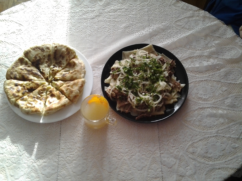Бешбармак и хычины, ну и поела вдоволь))) вкусноооо....