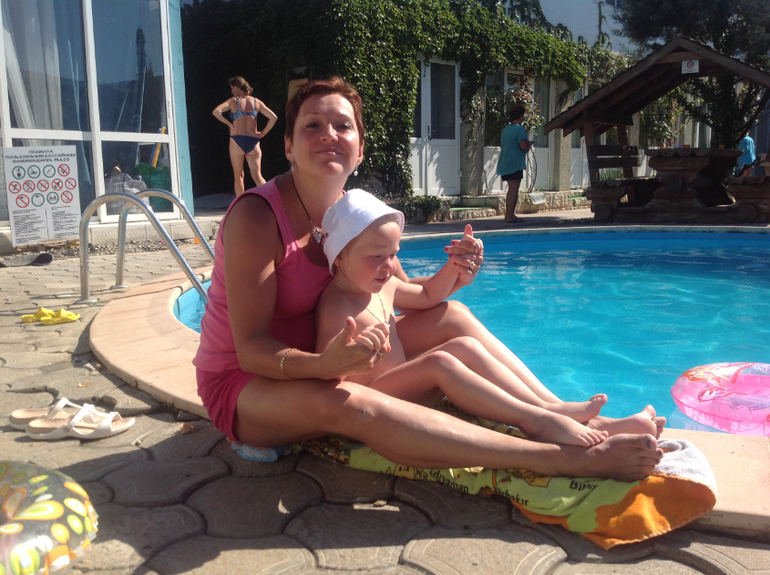 А сегодня очень даже! Жарко! Вода бодрит, она не парная, конечно! Но вполне комфортно, дети не вылезают.