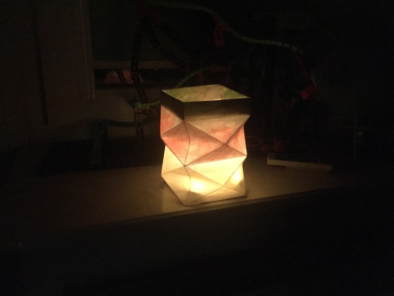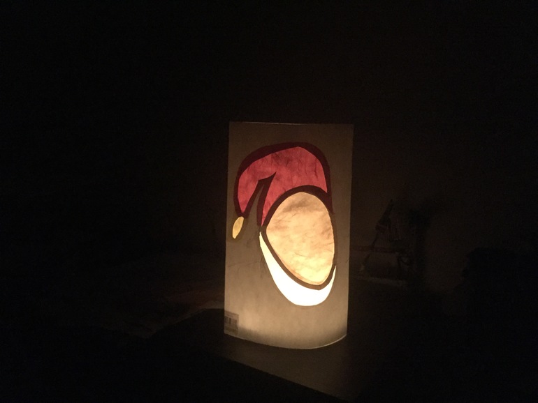 А с Никитой мы сделали другой фонарь, из промасленной акварельной бумаги. Процесс ему очень понравился, особенно маслом мазать.