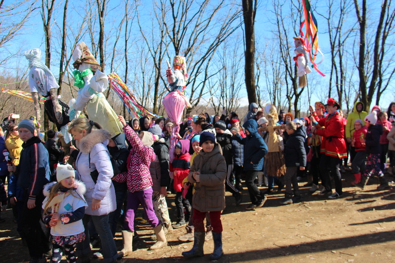 Масленица проходит в нашем Блиновском лесу, от нашего дома 5 минут в гору.