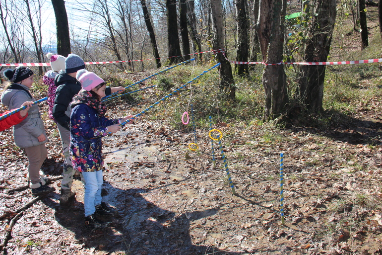 Это конкурс дочки с ее подружкой. Надо было попасть веником с расстояния в круг (сами придумали).