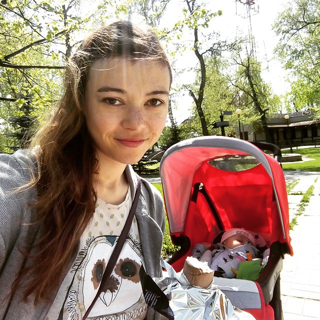 Сегодня у нас была одиночная прогулка. Точнее, встретили бабушку моей знакомой, гуляющую с никитиным друганом Петей, поболтали о том, какая у нас прекрасная коляска (я люблю такие темы, да:)). А потом я осуществила свою мечту. Не знаю, почему я никогда так не делала раньше.