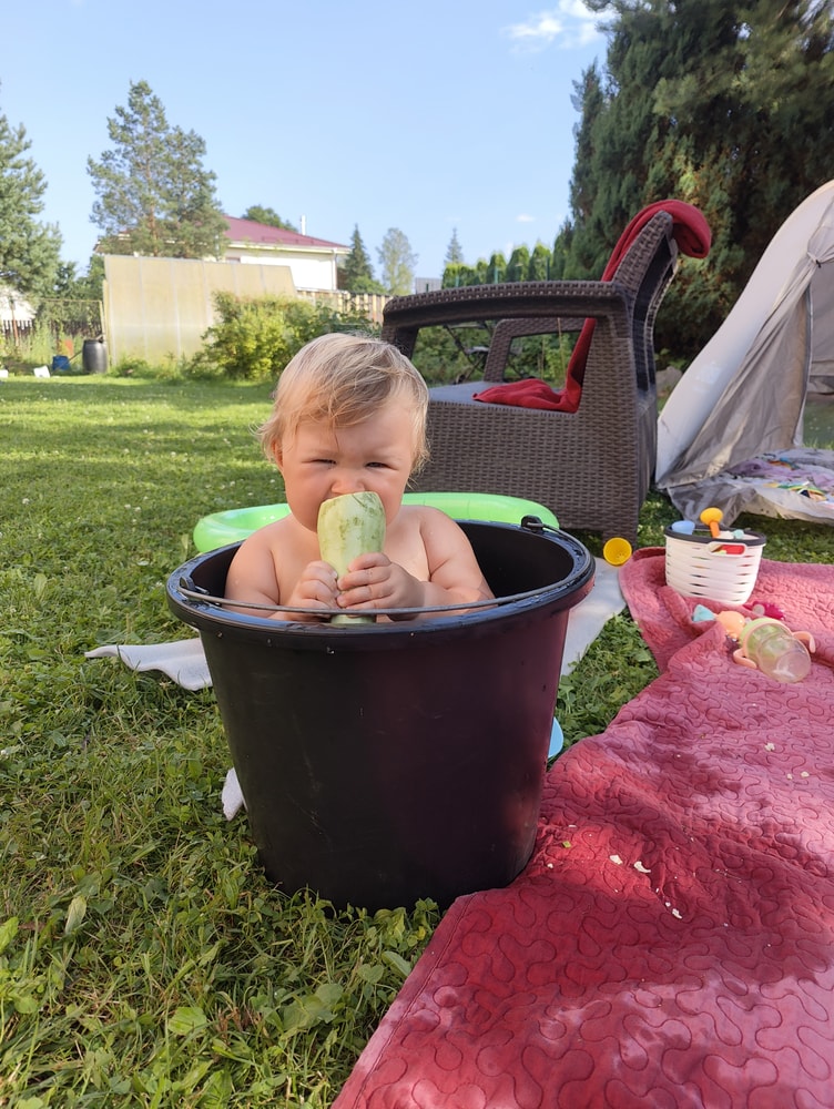 Вывод: пусть малыш наслаждается тем, что ему реально нравится 😎✨.Иногда маленькое ведро с водичкой и кабачок – это гораздо больше радости, чем целый аквапарк.