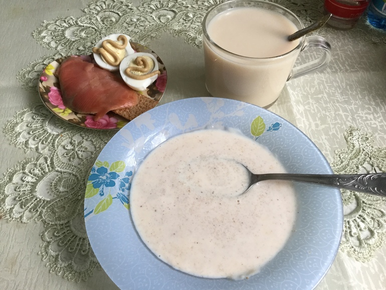Ничего сверхъестественного:жидкая каша из обезжиренного молока с ОО,чай с молоком и сах.зам, крипс с семгой и 1 яичко с горчицей)))