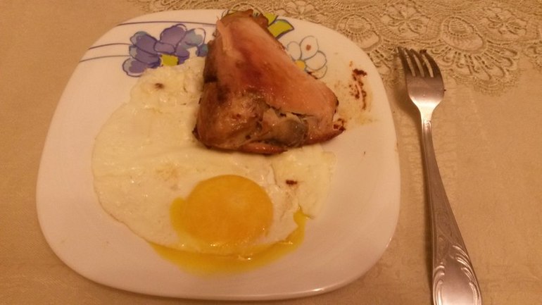 На ужин курочка в соевом соусе и 1 яичко, стакан воды и йогурт с отрубями