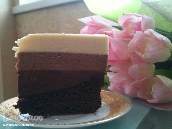 Последним готовим мусс из белого шоколада – и выкладываем на мусс из молочного шоколада