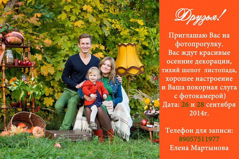 Я люблю свою работу, и для меня очень важно, чтобы фотографии были живыми и яркими. Мне очень нравится создавать различные фото-истории. Детская, семейная и романтическая съемка, съемка в ожидании малыша или съемка Вашего свадебного торжества – это то, что я люблю снимать. Это истории, которые меня увлекают. Надеюсь, что мои работы останутся для вас ярким воспоминанием.