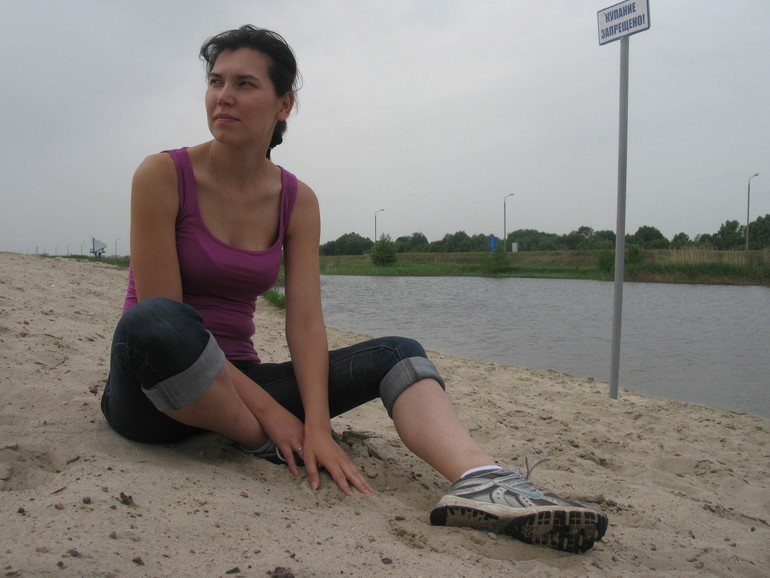 Настя, привет! Мы когда вернулись из Бреста в Москву, я так расстроилась, покидали это замечательное место в ТАКОЕ солнце, а приехали домой в ТУЧИ и прохладу. Сейчас погода налаживается, уже 3 день стоит теплынь. Но сезон я не открыла, не купаюсь я в городе нашем. Зато в Бресте мы отметились )))) Вот тебе фотки: 1. Это я на гребном канале, 2. это Мы на Муховец (ни себе ни детям купальник-плавки не брала, поэтому в чем были))))
