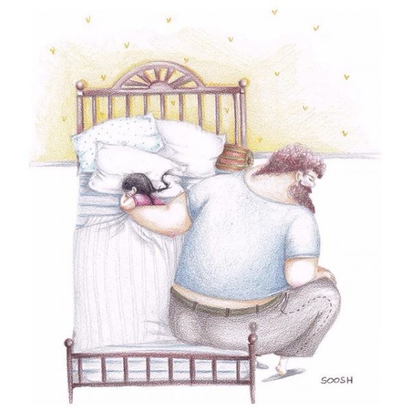 Любовь пап и дочек нежная, особая, отличная от материнской. Папа всегда будет оберегать свою принцессу, не давать в обиду и ради нее сделает все, что угодно, хоть по потолку пойдет, хоть окажется с накрашенными ногтями и косичками в волосах. Иллюстратор Снежана Суш, кажется, многое знает о таких отношениях, иначе как она сумела нарисовать такие тонкие по смыслу картинки про папу и дочку? Все они были опубликованы в Инстаграме автора и высоко оценены подписчиками. Вам они тоже очень понравятся!