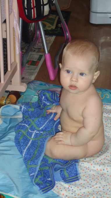 Ну вот и нам 8 месяцев. Что имеем: 4 зуба, скрипит ими, нервируя этим маму)))), ползаем только на пузе, очень хорошо у нее это получается, стоять так и не научились, сидит давно уже без поддержки, мамкает вовсю, скоро едем к бабушке с дедушкой, будем заново знакомиться. Едим все, что не приколочено, проблем с прикормом нет, это радует, молока становится совсем мало. Весим уже 9500, рост примерно 71 см.