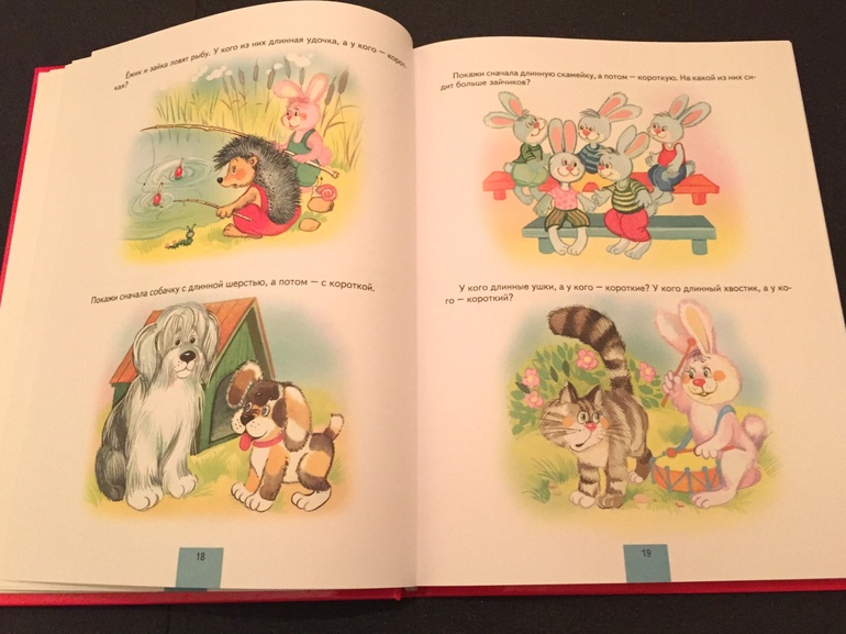 Еще не понравился первый раздел - Сенсорика. Несколько картинок одного цвета и сомнительные стишки как-то не впечатлили. Теперь, по прошествии времени, мое мнение изменилось и я готова книжку порекомендовать, но использовать ее лучше не раньше 2 лет. И, если опыта занятий с ребенком не очень много, наверное, стоит начать с чего-то другого. В отличие, например, от пособий серии "Дошкольная мозаика", ИД "Карапуз", здесь нет подробного объяснения для родителей, нет стоящих дидактических рекомендаций. Это просто набор заданий на внимание, сравнение, сопоставление, счет, развитие речи и т.д. Но задания интересные, разнообразные, моя дочка их очень любит, сама достает книжку почти каждый день. Иллюстрации неплохие, но неровные. К темам "предметы" и "животные" - очень хорошие, реалистичные. В некоторых разделах мне не очень понравились, но негативных ощущений, как в предыдущей книги, н вызывают.