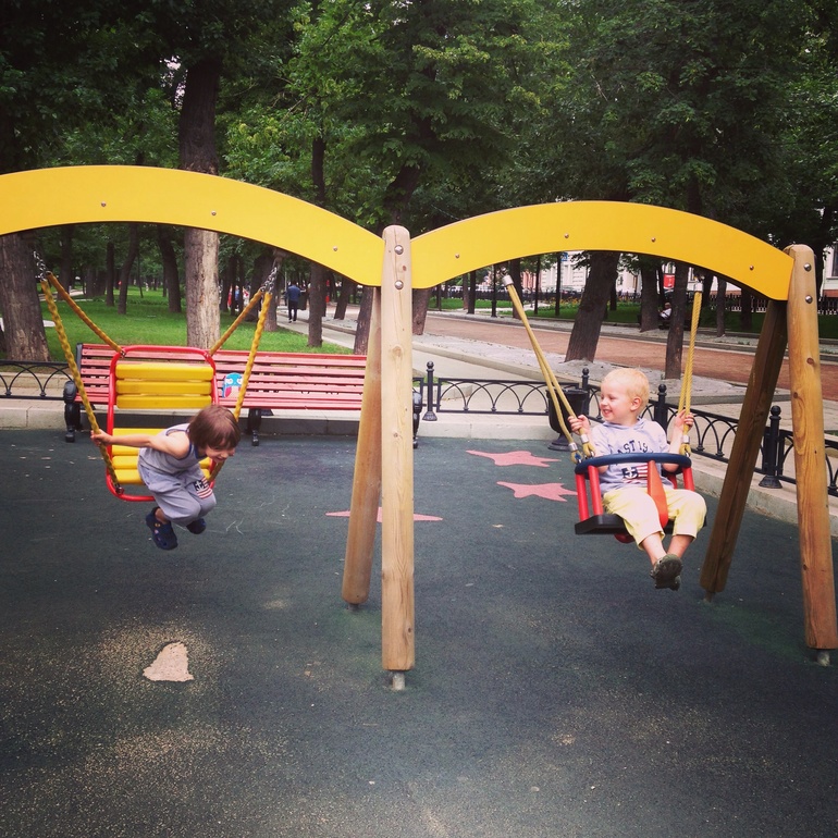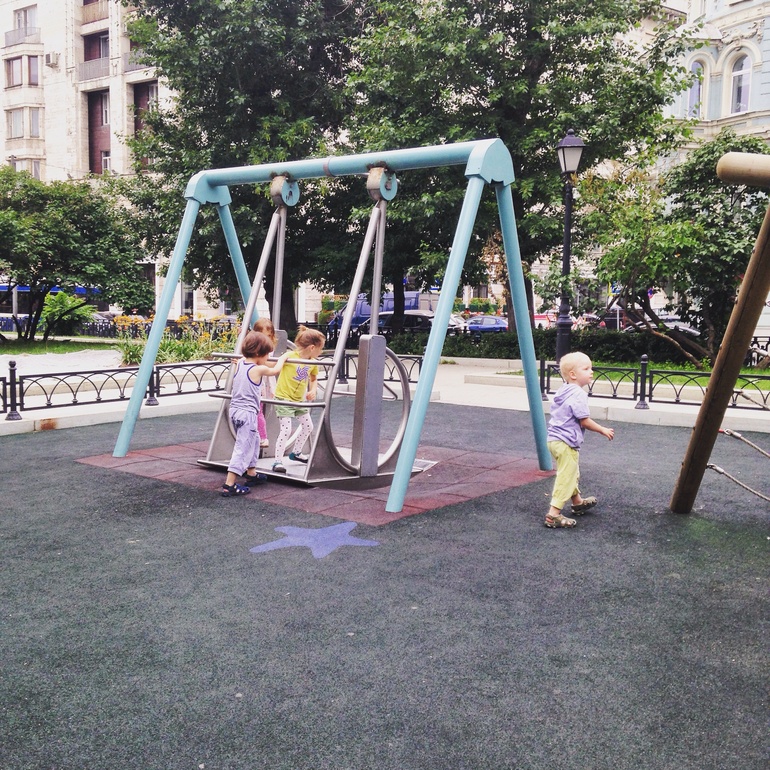 знакомые лица! )) Детки хорошо повеселились, наверное, вчетвером. А вы, надеюсь, смогли поболтать. Слушай, Маш, ты мне прямо заново центр Москвы открываешь. я не думала, что там стооолько детских площадок везде!