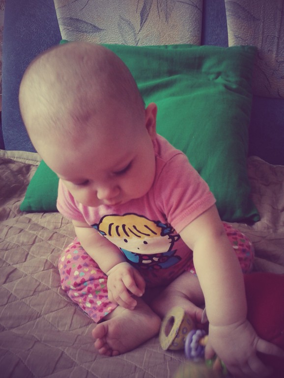 Вчера нам исполнилось полгодика, и мы первый раз сами сели!!! Сейчас любит подолгу сидеть и возится с игрухами, а еще ползать по дивану, особенно если надо доползти до какой-нибудь игрушки или маминого телефона))))