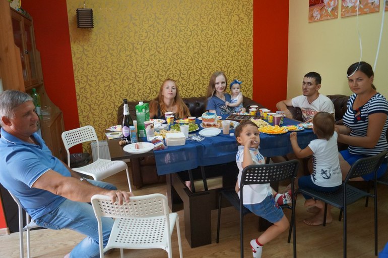 Пришли мы прям к 11, некоторые наши гости уже были там. Это моя подруга с сыном (он на 3 недели старше Мити) и жена Митиного крестного с дочкой (ей было год и 10). Еще из детей к нам должен был прийти мой брат, но с утра мама позвонила и сказала, что он заболел, блин! И должны были приехать из Краснодара Митина крестная с мужем и двумя детьми (5,5 и 1 год), но они попали в пробку и опаздывали.