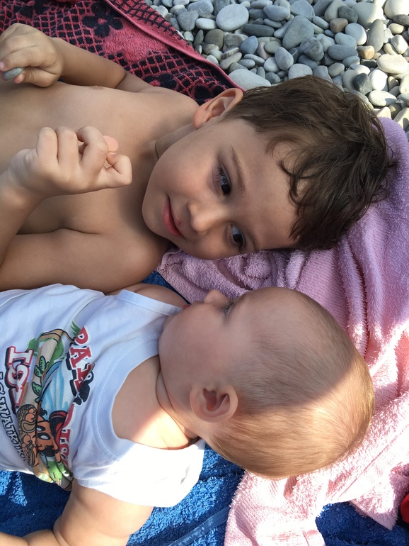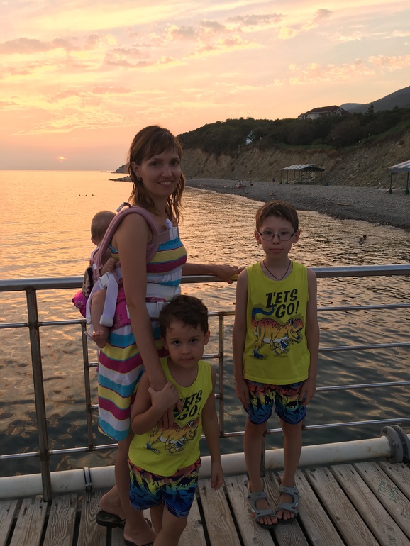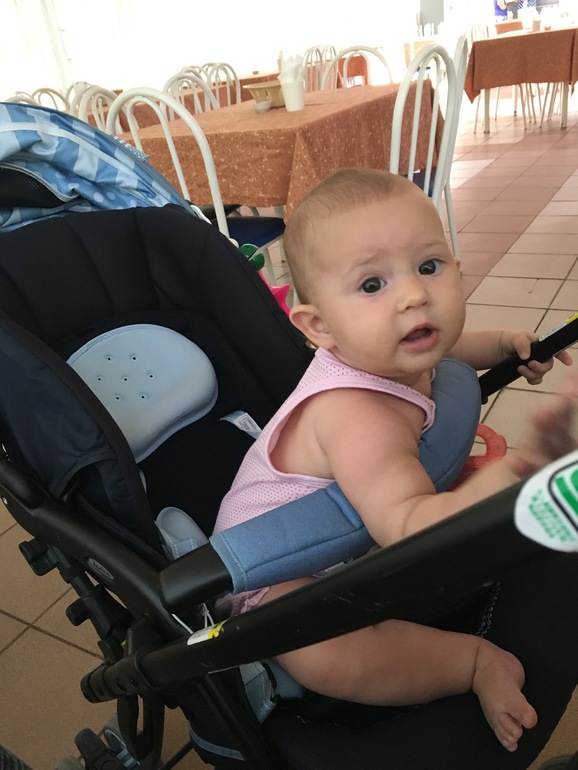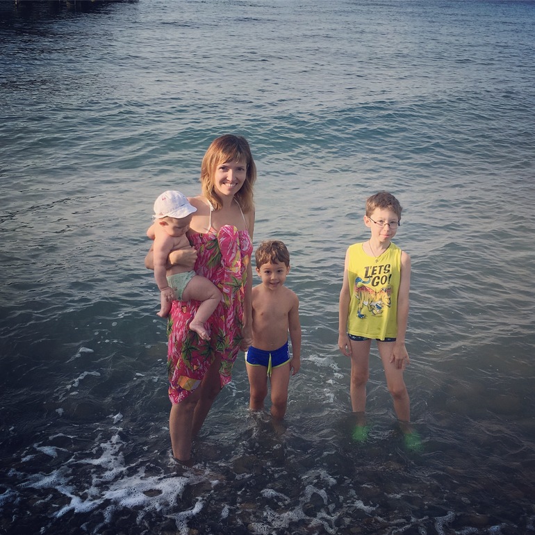 А Алекс в коляске лежать совсем не хотела, ее все время приходилось на руках таскать. И дома сама лежать она тоже отказывалась, кстати. Так что мне этот отдых дался не легко. Вроде и хорошо, еду готовят, стирают-убирают, Митю бабушка пол дня развлекает. Но остальные пол дня Митя на мне висит или мультики смотрит, а Алекс на мне почти постоянно. Еще ж и на море вставали рано, в 7.30 выезжали уже, так что я вдобавок и не высыпалась совсем. А руки и спина вообще отваливались.