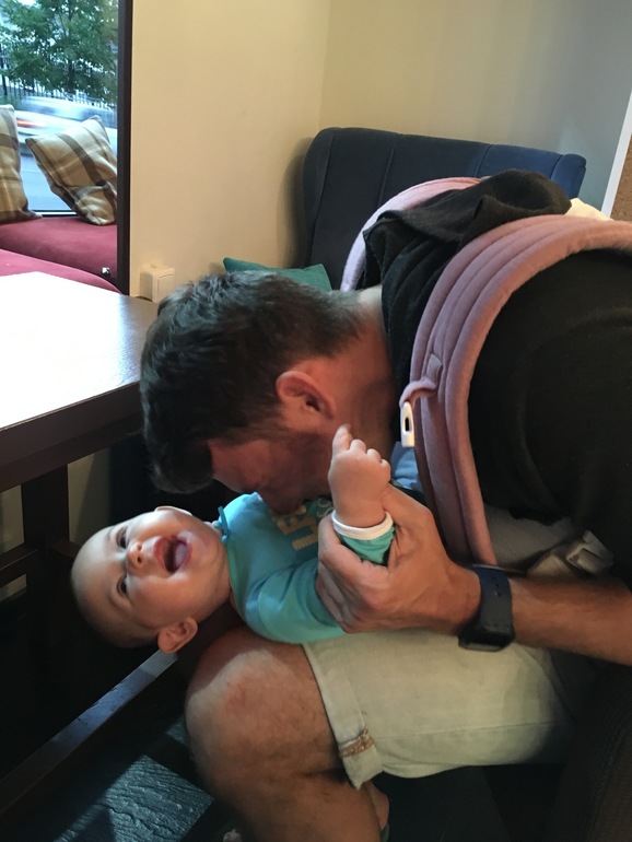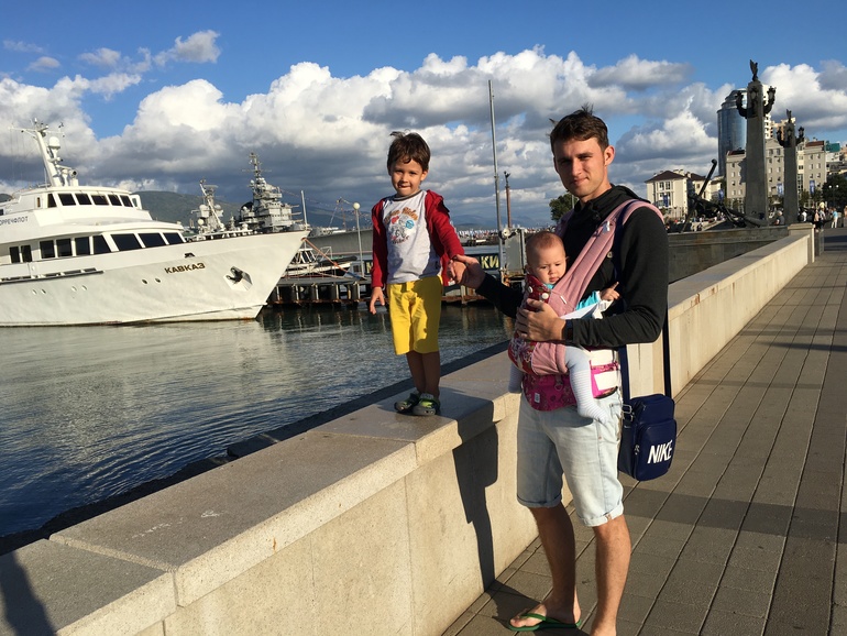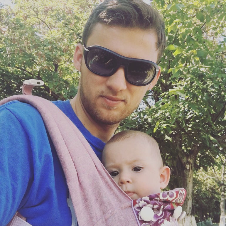 6.09 приехал муж. Алексаша восприняла папу хорошо. В этот же день сидела у него в эргорюкзаке на прогулке и даже спала там. Так что теперь мы много гуляем, везде ездим (если погода позволяет), в общем с мужем классно)) Особенно радуется моя спина. Мелочь так коляску и не признает, сидит там минут 15, а спать вообще отказывается. Поэтому сейчас ее носит муж. Ну и со слингом мы намного мобильнее, чем с коляской. Хотя я не знаю, что буду делать зимой, когда Коля опять уедет, а мелкая будет весить еще больше.