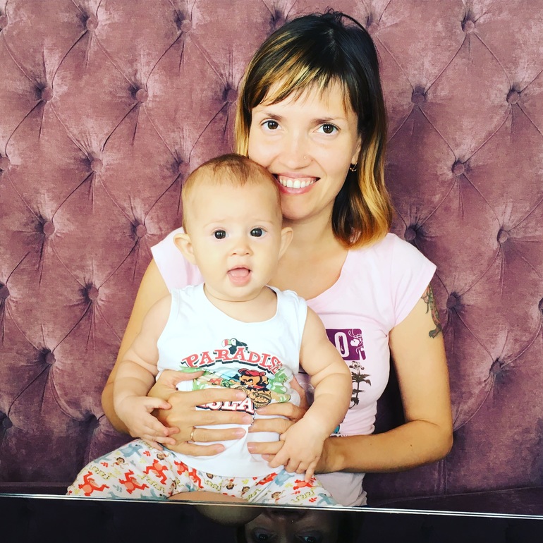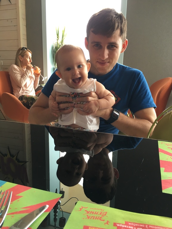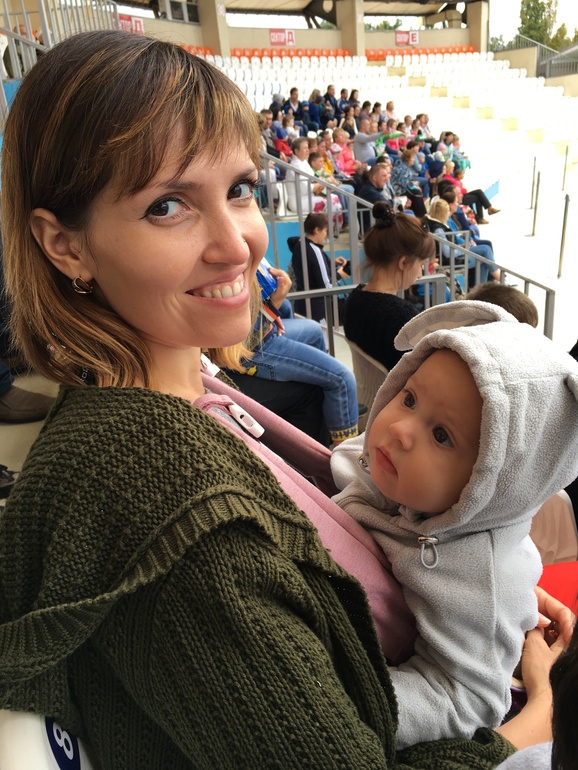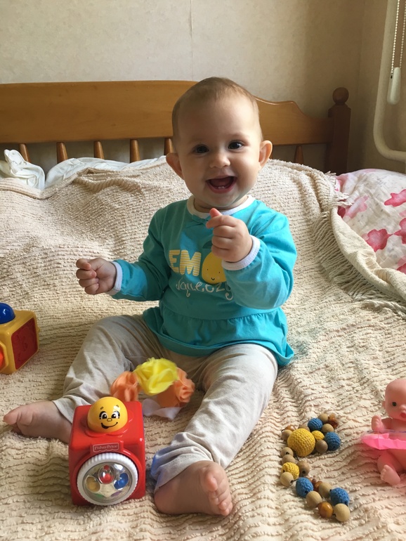 В общем, дочка сейчас очень классная - с игрушками играет, с Митей играет тоже, разговаривает много (правда, "мама" говорить опять перестала), танцует под музыку, смеется часто. Плачет сейчас намного реже. Только если сильно хочет спать или в коляске)) На руки ко мне всегда просится. У меня моментально успокаивается. Купаться любит, но мы редко ванну набираем. Просто в течение дня моем ей попу, а к вечеру обычно уже не до купаний. Но иногда все-таки плещется или с игрушками в ванне играет. На животных стала хорошо реагировать. Может очень долго смотреть на котов, собак, голубей. Даже иногда удается ее в коляске успокоить, показав котика или собачку. Ездили с детьми в зоопарк-дельфинарий, там она тоже всяких животных поразглядывала. А пока шло представление, спала у меня в рюкзаке с грудью во рту) Еще пару раз с ней ходили в кафе, в принципе нормально все прошло. Только в детском стульчике она сидит недолго совсем. Но на руках нормально, не орет по крайней мере)