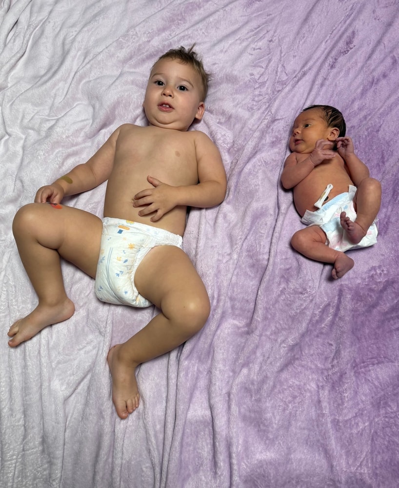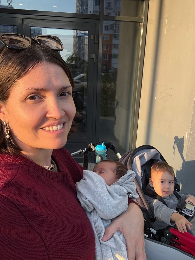 Я их даже уже обоих разом пару раз укладывала 😁 и Гуляла с ними, но все мои прогулки прошли не совсем удачно - малышка орала и ее приходилось нести на руках или кормить. Зато Леон более менее сносно ездит в коляске новой 👍 и во дворе прекрасно гуляет, пока я занята малой.