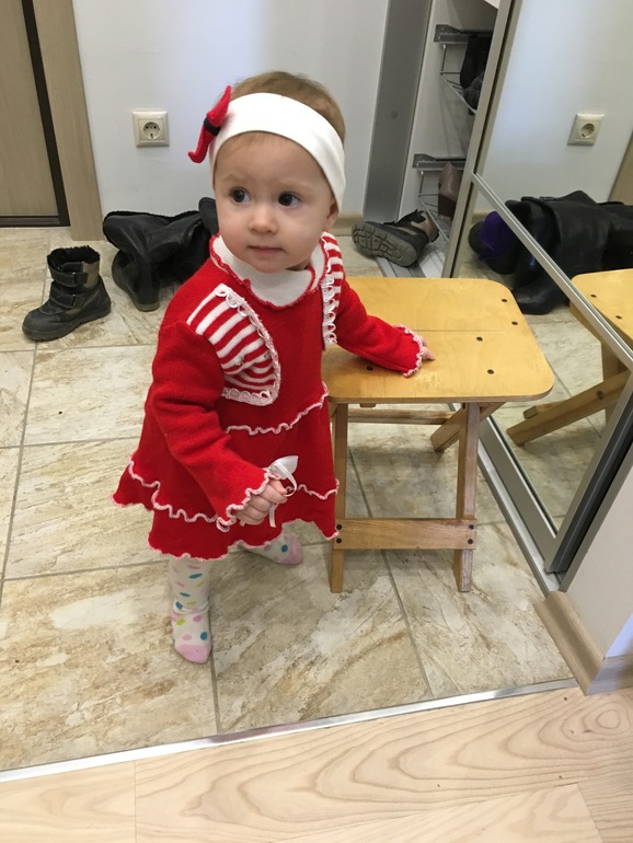Вообще, 1-2-3 шажочка от меня к Мите, или от стенки ко мне она уже с 10.01 делает каждый день, но сегодня прошла через всю комнату (шагов 10-12). Сама, наверно, такого не ожидала) Так что буду считать, что с сегодняшнего дня зайка пошла сама. 11 месяцев и 27 дней, папа наш тоже ровно в год пошел, как говорит свекровь. А Митька и я в 10,5 месяцев) Каждый ребенок в кого-то из родителей получился.