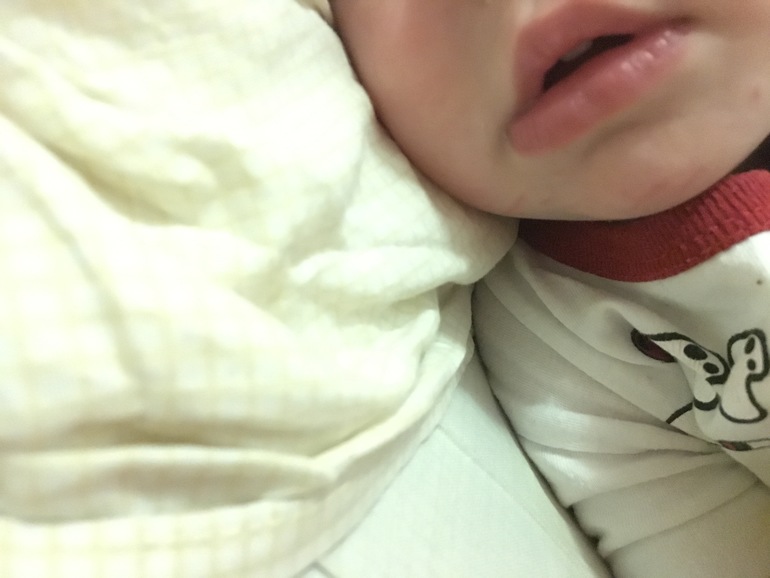 Сегодня первая ночь с пятницы, когда малышечка моя уснула в 21.00 почти без капризов. А вообще, она бедная вся в слюнях, жуёт все, что можно, а сегодня на прогулке разцарапала себе щеку и подбородок, там, где зуб лезет, сидя в коляске. На фото почти не видно, она как раз на этой щечке спит. Ну и я молчу о ее поведении, это пипец просто 🙈