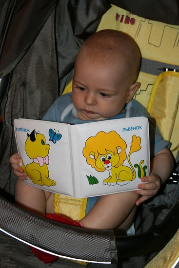 - совершил прорыв в области эмоций. Эмоциональным, а главное, улыбчивым был всегда, но теперь это помножилось на 10: радуюсь своим, боюсь некоторых чужих, очень четко изображаю на лице то, что чувствую внутри. А недавно, услышав, как мы с папой смеемся, посмотрел на нас по очереди и тоже начал смеяться. Мы от этого вообще чуть со смеху не умерли.