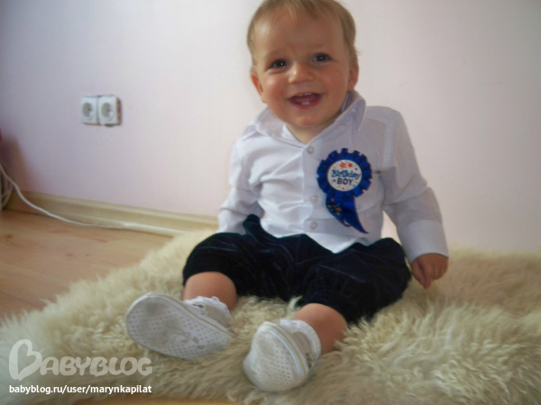 вот и исполнился год дейвиду. время пролетело незаметно)) . из маленькго тощенького червячка дейвид превратился в хорошенького карапуза)) глаза так и остались черными с рождения а вот волосы кардинально поменяли свой цвет с черного - на светлый блонд)). теперь блондин с черными глазами деловито ползает по дому и периодически качает права.)) хорошо ходит держась за мой палец. сам может пройти три шага пока что но видно что боится хотя когда ему удается перебежать без поддержки - очень радуется. стоит без поддержки но так же боится это делать.)) любит кататься на машинках детских( не сам а когда его катают) любит играть в песке. может сидеть в песочнице и сыпать песок долго долго. песок уже не ест но камешки - тут же в рот говорит при этом кака и смотрит на меня вопросительно.)) как говорю - плюнь. но приходится доставать изо рта. впрочем он не сопротивляется - тут же отдает и утверждает - кака. как это его любимое слово. видимо потому что хорошо получается выговорить. если просишь сказать папа - говорит тата. мама - он говорит либо баба либо дада. мама получается спонтанно. но повторить не может когда просишь. пытается - но губы и язык его еще не слушаются)) на собаку кошку птиц говорит татата. на петю тоже тата. вобщем несколькими звуками пока обходится. но всегда с разной интонацией и именно привязывает к конкретному действию человеку или предмету. если слышит что звонит телефон - тут же сообщает - татата!!!. любит рассматривать книжки. и говорит при этом так протяжно даааа. читает видимо))) слушает короткие сказки. такие как курочка ряба например. танцует ( качаясь) под музыку и поет ааааа. все разбрасывает. очень ловко бросает мячики . собирать ничего не собирает. я показываю он выдергивает руку и швыряет то что было в руке. кусает плюшевую собаку за большой кожаный нос. куклу тоже кусает. на просьбу погладить лялю - кусает. вобщем не особо ласковый. вот ударить - укусить - вырвать клок волос - это всегда пожалуйста. учу - ругаюсь - говорю - нельзя- все без толку. буду ждать может что то изменится. на машины говорит брррм. знает папину машину - увидит бежит со всех ног( за руку) приговаривая - тата тата тата. ну и конечно много смеха улыбок и позитива от него)))