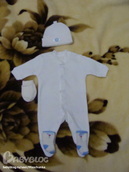 Потихоньку готовлю одежду на выписку, поскольку в роддом вещи уже практически тоже собраны. Сегодня купили тепленький "человечек" для нашего малыша и шапочку с начесом (под низ). Еще хочу тепленькую кофточку))) Еще сегодня "приехали" кроватка, постельное, матрасик и стойка под балдахин.