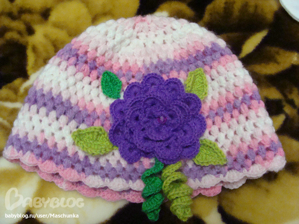 А шапку и пинетки вязала сама. Шапка для дочки на "сейчас". Загорелась и связала за 1 день.
