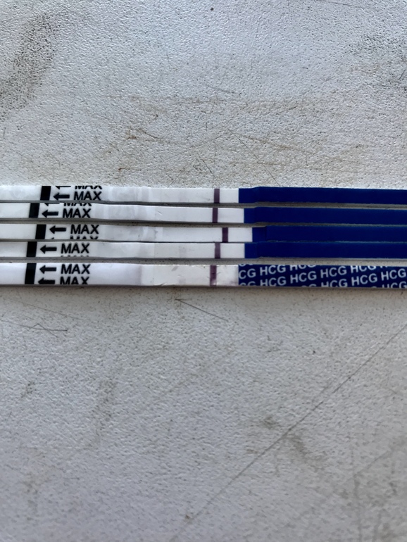 Первые тесты сделала в пятницу там появились полосочки не то что призраки а прямо различимые сразу на паре тестов ( до М предположительно было 3-4 дня) повторила Фрау тест в субботу полосочка тоже проявилась....затем я успокоилась перестала делать тесты. Вчера за один день до задержки повторила Фрау что то еле еле различимое есть вроде🤭на других тестах вроде ничего нет....сегодня первый день задержки. БТ промеряла утром 36.9 на электронном градуснике, но насколько я знаю у него погрешность и он ниже ртутного темпу показывает. Грудь не болит как обычно перед месячными, но соски прям чувствительными стали. Потягивает низ живота и в спину отдаёт переодически....