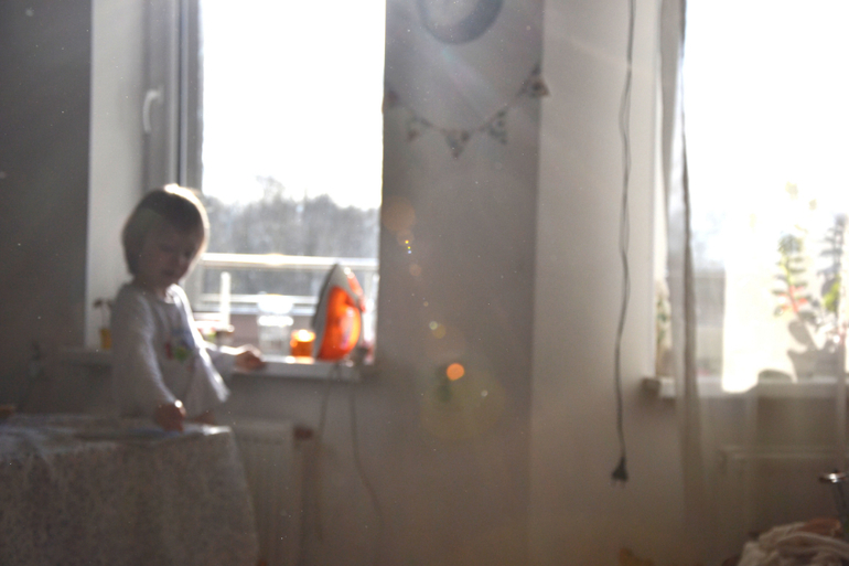 А это Рома проснулся в 6:30 утра. Возился на кухне. Попил кефирчика и съел пряник.