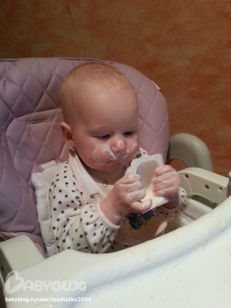 Но без моего возмущения в поликлинике не обошлось. Мочу в поликлинике сдать не удалось, не собрали. Поэтому сдавали в инвитро. Принесла значит я анализ педиатру, вот говорю мы сдали перед прививкой, вроде все норм, но вы посмотрите. Ага, щас. Даже не взглянула! Говорю, у нас зуб вылез. Мимо ушей. Спрашиваю про прикорм, вот говорю, ест плохо прикорм, творожок только уважает. Спрашиваю, ничего страшного, что получается с творожка начали, не рано? Нет говорит, нормально. Но тут значит м/с встряла и давай меня ругать, что я кормлю банками, вот поэтому она у меня ничего и не ест. Вы типа сами пробовали эти банки и т.д.. И что даже каши не ест? И т.д. и т.п. Я пытаюсь объяснить, что Полина даже на ложку рот не открывает, орет, и только только вот стала есть кабачок и творожок. А она мне свое, что как же так не едим каши. Давайте я, говорит, к вам приду и сварю кашу и покормлю. Ну да, у меня то руки из жо.. растут, я ж сама не умею. Ну короче расстроилась я. Лучше вообще ничего не говорить и не спрашивать. Вот и получается, что информацию приходится брать только из интернета, т.к. педиатр ничего посоветовать не может. И им плевать в какое время и когда какой прикорм я введу.