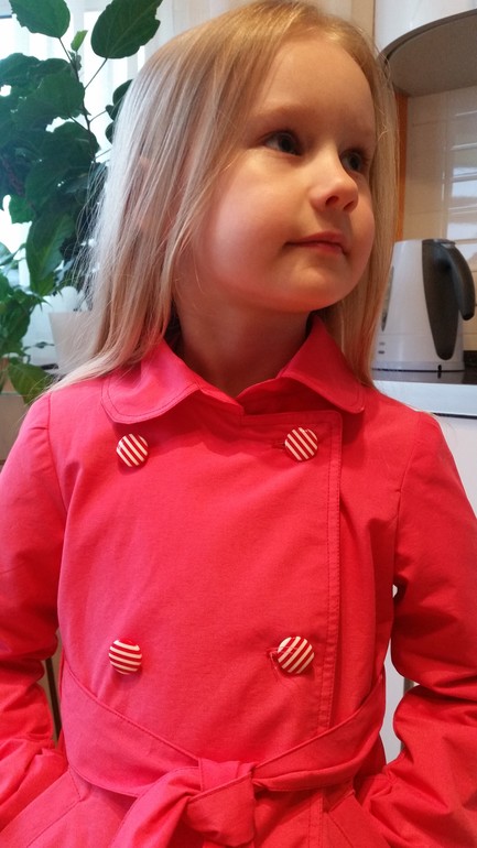 Девочки, спешу похвастаться своим плащиком. Модель всем известная, отто 1/2013, модель 31. Ровно год назад я спрашивала совета как уменьшить выкройку, т.к. размер 110 нам был велик. В итоге почти год он пролежал, и этой весной я его дошила.
