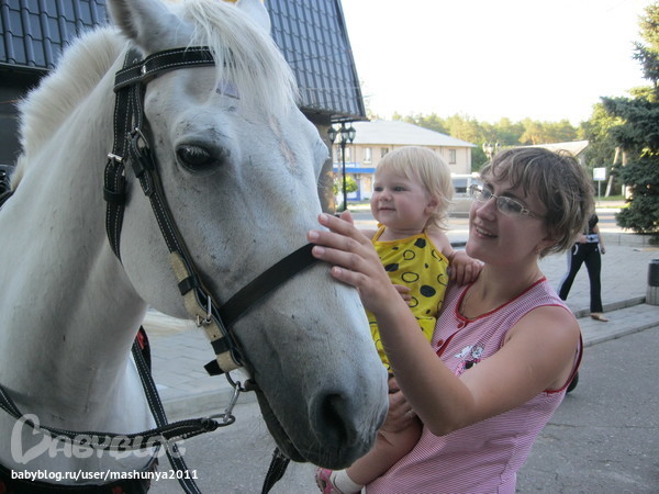 лошадку Маша увидела впервые... и была очарована! даже не побоялась погладить! а потом еще и поцеловать захотела, но я не разрешила.