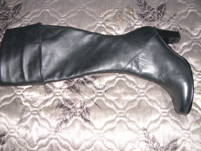 Демисезонные сапоги из черной кожи, р.37 (на ступню 24 см), небольшой устойчивый каблук, высота голенища до коленной чашечки (можно носить с отворотом). Одеты 2 раза, в идеальном состоянии, подкладка - тонкая шерсть. Мягкие и удобные, внутренняя молния.