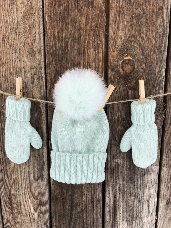 Решила вспомнить былое. Помните раньше были безумно модные шапочки со стразами? Сейчас мало кто такие вяжет, а мой ребёнок так долго такую просил. И я не удержалась. Комплект из мериносовой пряжи со стразами для дочи