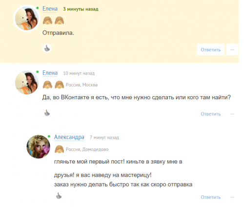 Саша меня вывело не то, что вы уехали, не то что вы пропали. А то, что обещали отправить в одно число, а потом были отмазки (я их расценила именно так), а потом вообще пропали. Если я пишу отправлю на днях, так я иду и отправляю. Если я не могу написать в личку, то я пишу в комментариях к любому посту этого человека. И я же вас не обзывала, даже плохого слова в ваш адрес не написала. И я не писала ни модераторам, ни кому, а написала "девочки и не знаю как быть...дальше история как все было", приложила переписку с числами что вы мне обещали отправить еще до отъезда. И поверьте если бы я этот пост создала раньше(думаю надо было бы), то девочки мне скинули ваш телефон(тот кто его видел). И я бы нашла вас по телефону, вы бы мне угги отправили, а я удалила бы пост. А потом случилось если бы у вас, что то, то вы бы также мне написали в личку попала в аварию(не дай Бог), валялась на больничной кровати. Я бы ответила хорошо, что живы, а то я вас потеряла пришлось даже в ЧС писать