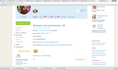 А знаете Александра я смотрела вашу одну страницу и контактов я увы не нашла...Лазеть по всему дневнику у меня нет времени. А вы свой телефон мне в ЛС не оставляли.