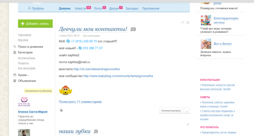 я поступила плохо! но у меня есть хотя бы оправдания, и причины! а вы ничего не сделали , чтоб меня найти! вам было впадлу даже зайти и просто увидеть мой мобильный! во все дневниках оргов есть личные данные! у человека может быть 1000000 прчин почему не может зайти на сайт! но это не озночает , что я вас кинула и не нельзя была меня ни как найти! я понимаю если бы я везде во всех сетях вас игнорировала,! и трубку не брала! у меня москвосвкий номер работал ! специально для девочек!