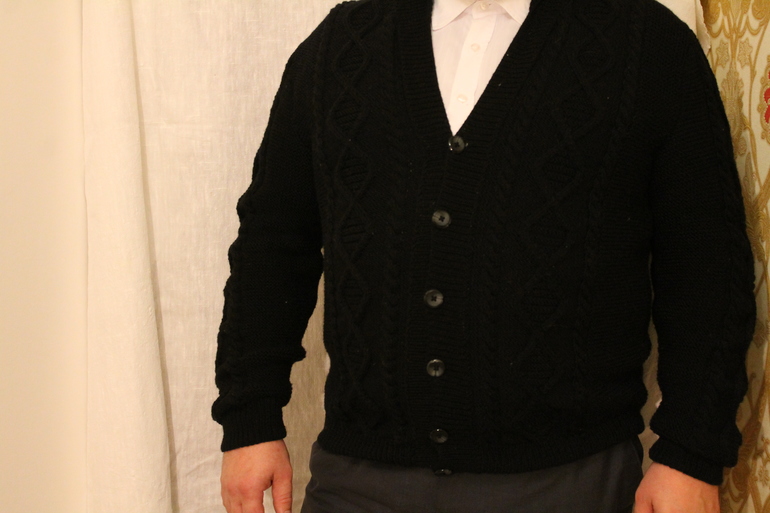 Связала любимому ко дню рождения кофточку. Вначале хотела сфоткать на модели. Но как то не получается у меня, да и позировать он не любит. А показать вам свое творение ох как хочется. Ну и собственно фоточка